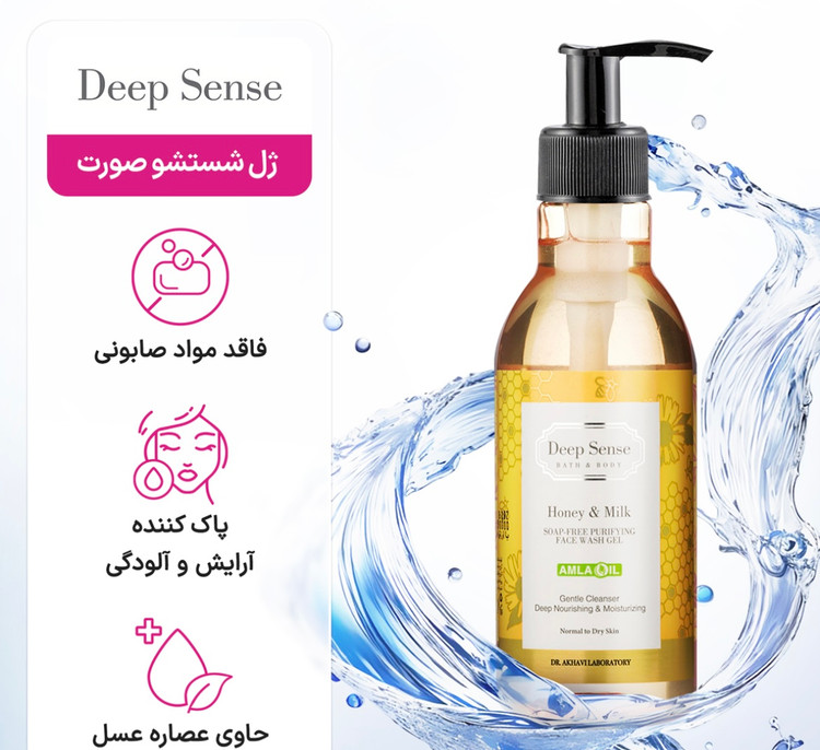 ژل شستشوی صورت شیر عسل دیپ سنس یک شوینده روزانه مناسب برای پوست های معمولی تا خشک و حساس است. ژل شستشوی دیپ سنس شیر عسل نه تنها پوست را از سلول های مرده و چربی ها پاک می کند، بلکه از خشک شدن و کشیدگی پوست نیز جلوگیری می کند.