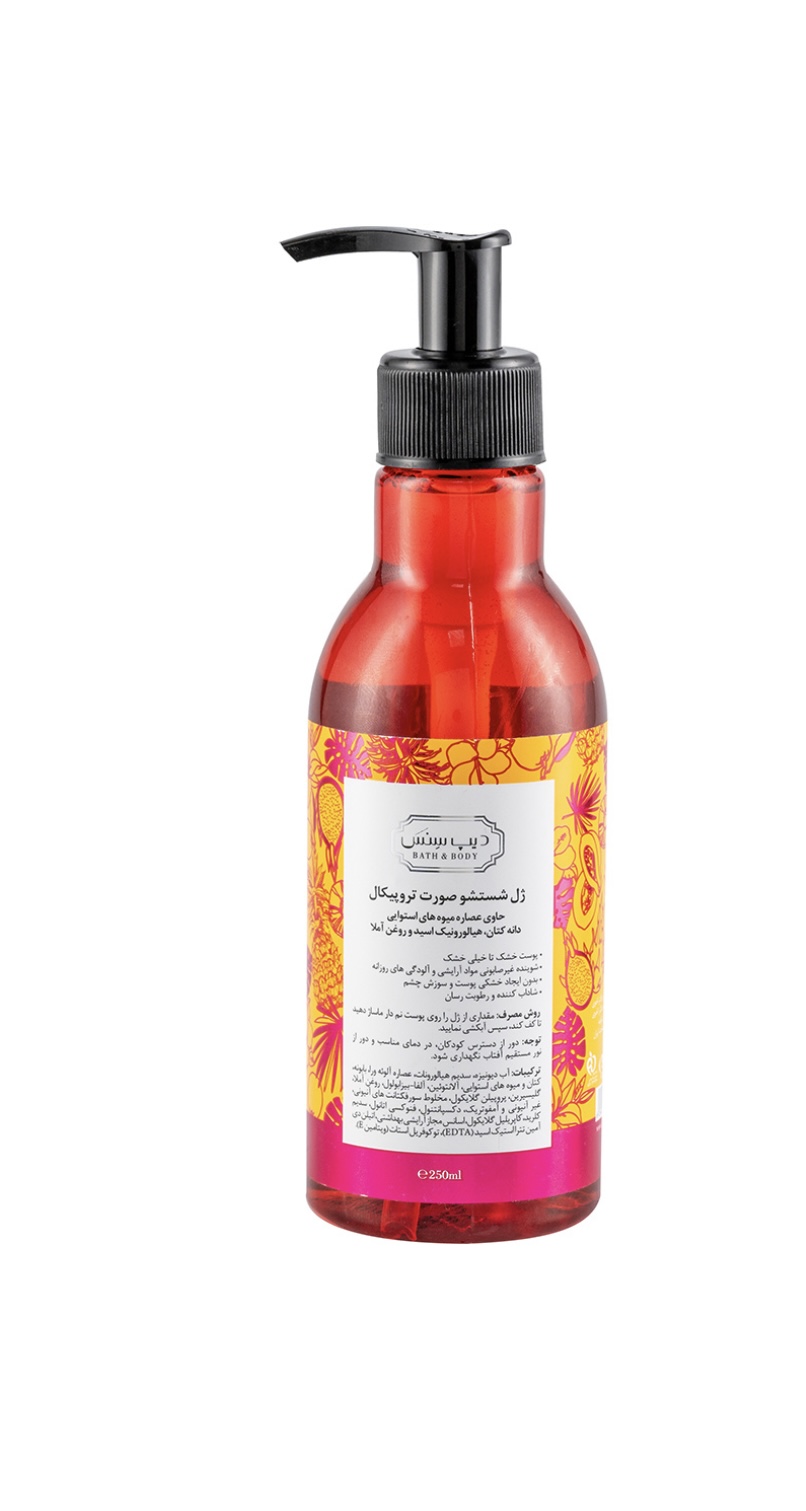 درباره محصول : ژل شستشوی دیپ سنس پوست خشک حاوی هیالورونیک اسید، آبرسان عمقی پیشگیری از ایجاد خشکی، کشیدگی و سوزش پوست ژل شستشوی دیپ سنس پوست خشک دارای خاصیت آنتی اکسیدان افزایش شادابی و نشاط پوست ژل شستشو تروپیکال دیپ سنس پاکسازی پوست از آلودگی، چربی و مواد آرایشی فاقد مواد صابونی، احیا کننده پوست نرمال تا خشک