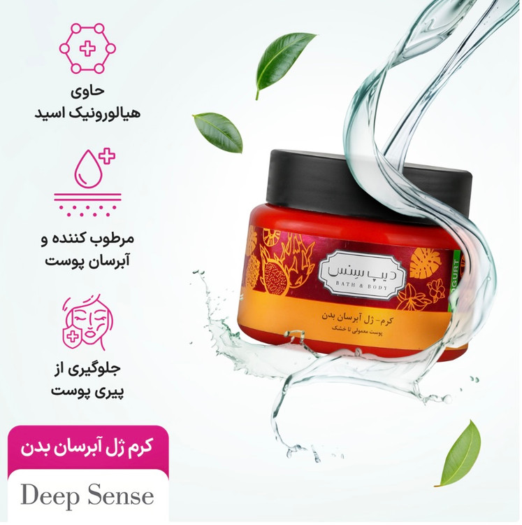 ماست بدن تروپیکال دیپ سنس مخصوص پوست های معمولی و خشک ضمن رطوبت رسانی عمیق و افزایش نرمی و لطافت طولانی مدت پوست، منجر به رفع خشکی و خارش نیز می گردد. این ژل کرم آبرسان بدن حاوی عصاره میوه های استوایی، کره کاکائو، روغن آملا، آووکادو، نارگیل و هیالورونیک اسید، با بافت سبکش در برابر عوامل نامساعد بیرونی از پوست بدن شما محافظت کرده و ظاهری ابریشمی به آن می دهد. ماست بدن دیپ سنس با قدرت جذب بالا و مناسب برای همه قسمت های بدنتان به خصوص نواحی بسیار خشک مانند آرنج ها، زانو ها، دست ها و پاهایتان است.