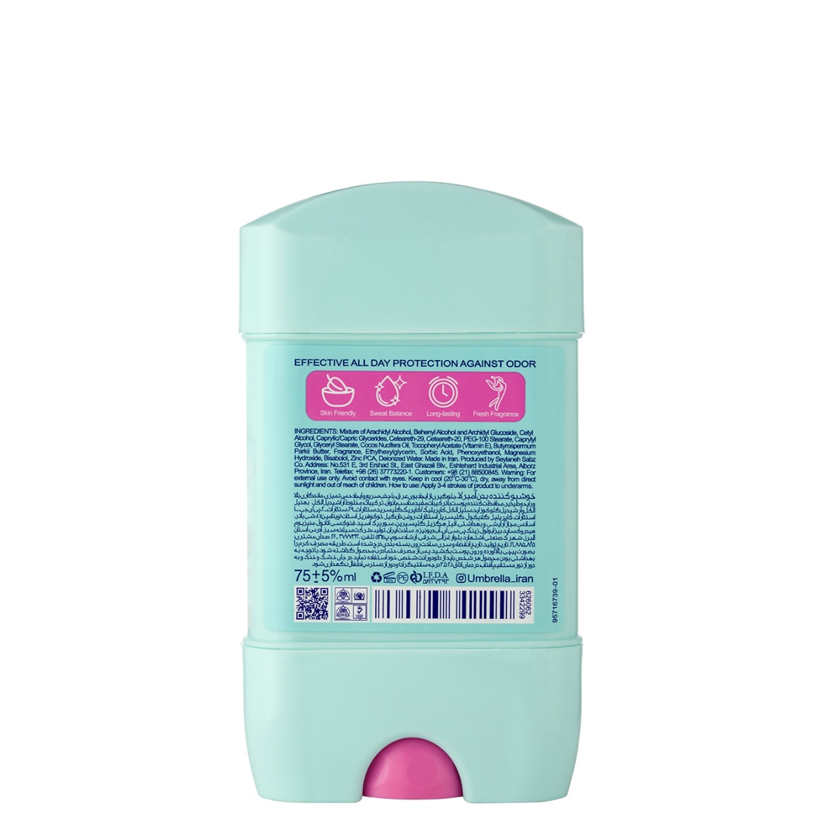 دئودورانت ژلی آمبرلا ، حاوی مواد مفید برای پوست است و علاوه بر از بین بردن بوی بد ، خواص مرطوب کنندگی دارد و از خشک شدن پوست جلوگیری میکند. مام ژلی زیر بغل آمبرلا مدت زیادی روی پوست باقی میماند و اثرات خوشبو کنندگی خود را حفظ میکند . دئودورانت ژلی آمبرلا ضد حساسیت و باکتری بوده و سریع جذب میشود و استفاده از آن را راحت و دلپذیر میکند.