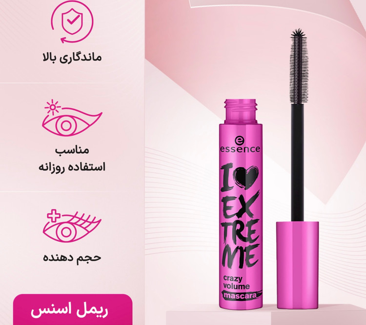 ریمل اسنس صورتی دارای برس ویژه و انعطاف پذیر است که موجب حالت دهی و تفکیک شدن مژهها میگردد. این ریمل دارای فرمولاسیون سبک است و از سنگین شدن مژهها جلوگیری میکند . ریمل ای لاو اکستریم ولوم بدون ایجاد حساسیت و ریزش، مژههایی بلند و خوش حالت به ارمغان میآورد.این محصول مژه ها را بلند و حجیم کرده و از چسبیدن مژه ها به یکدیگر جلوگیری می کند. این محصول از فرمولاسیون سبکی برخوردار بوده و احساس سنگینی بر روی مژه ها را نمی دهد.